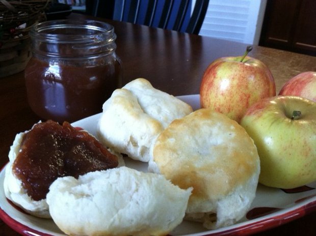 I’m still slowly giving in to the fact that fall is arriving. Not that I’ll be putting my sandals away for boots anytime soon. But I’ve enjoyed filling my kitchen with the smells of fall the past couple of weeks. And this week, the whole house had an autumn aroma thanks to homemade apple butter.