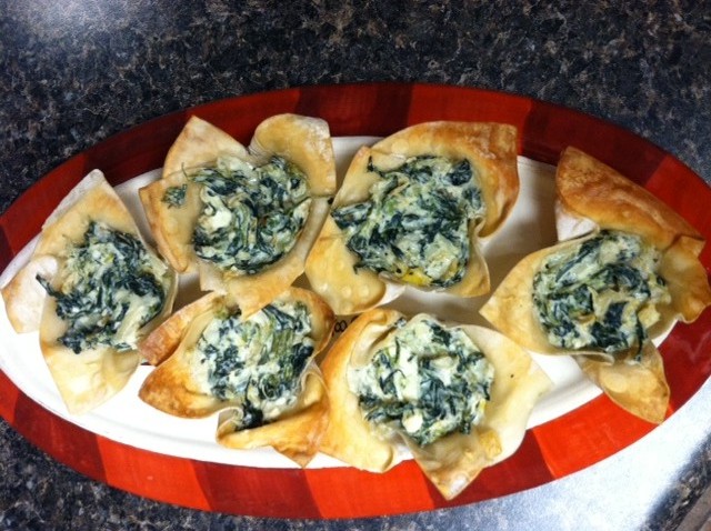 So I had a lot of wonton wrappers left after making Ravioli Caprese, and I didn’t want them to go to waste. I’ve seen numerous appetizers made with wontons on Pinterest, so I found a few that were enticing, then put my own spin on the ingredients, based on what I already had in my pantry. I was quite pleased with the way they turned out. Here are my versions of spinach artichoke tarts and lemon curd wontons: