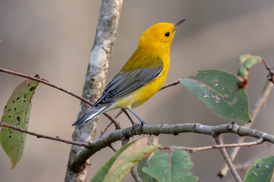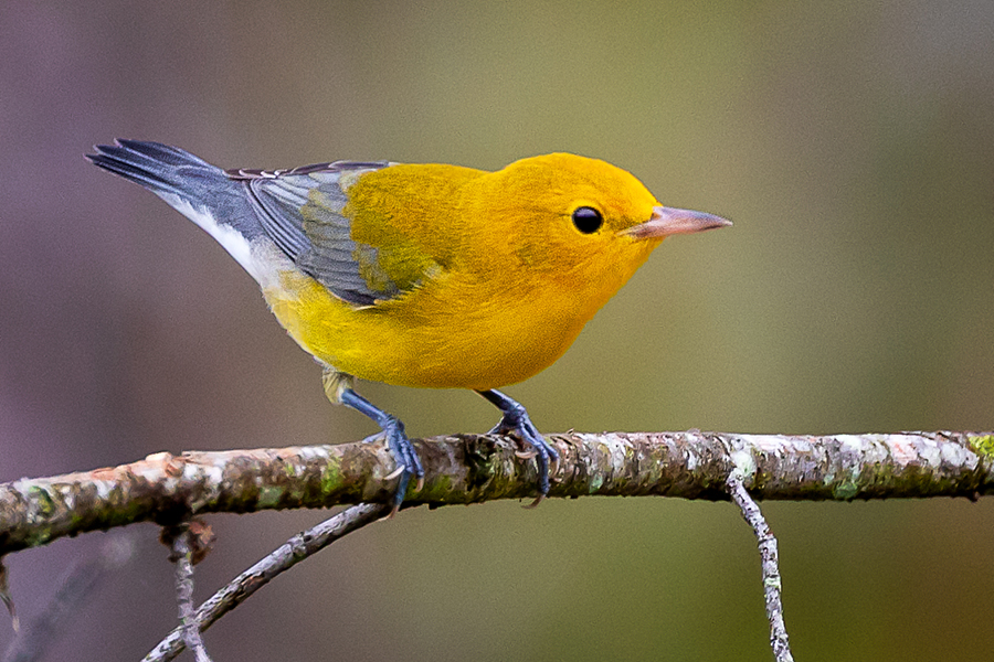 Wintering mainly in Central and South America, the Prothonotary Warbler returns to us each spring for the wooded swamps and watery borders of slow and standing water.