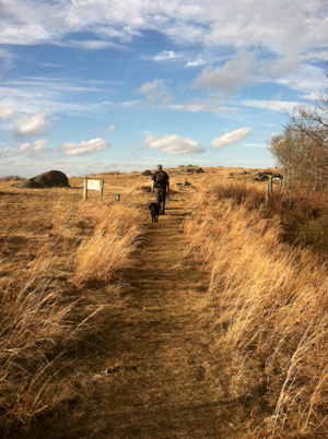 This was a good walk for all three of us: It was the dog’s longest trek since returning to the trail after multiple ACL/PCL/MCL/ACLU/NFL knee surgeries. It was satisfying for me in that it is a strenuous, lengthy, real damn hike, the likes of which we haven’t done so much of late. And of course for The Day Hiker it was yet another chance to CRUSH ME with her casual, pretty much unconscious hiking prowess.