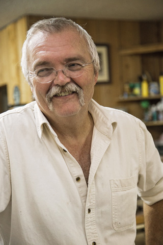 The gallery sits around a curve of Glades Road, in a building which has expanded over the years. Shelves display his work, his vision of mugs, bowls, even bacon cookers, most with the signature Alewine maple leaf. He walks toward me, hand outstretched sporting an electric smile. I take his hand and it’s not the greeting or the introduction I remember; it’s the size and softness of his hands.