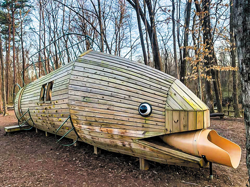 For the younger adventurers, the park offers a delightful surprise: a 45-foot-long wooden slide in the shape of a fish. It’s a quirky piece of play equipment that adds an element of fun to the park, giving kids a reason to pause their exploring and enjoy a good old-fashioned slide down the fish’s back.