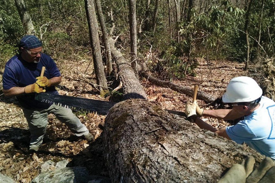 To Morris’s delight, the hands-on skills he learned as a boy have transferred perfectly to his volunteer work for the AT. His grandfather, who built his own rock walls and homes in southeastern Kentucky, taught him how to replace chair bottoms, shape wood with a drawknife, and use other traditional tools.