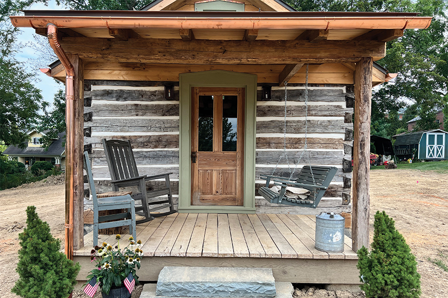 In 2019, Traylor was driving when he saw a bulldozer, a heap of rubble and, at the top edge of a house, layered under siding, just a few logs. He pulled off the road to take a closer look. When he got home, he checked the address online and contacted the owner. “A day later and the old cabin would have been pushed into a burn pile by that dozer, I am sure,” Traylor says.