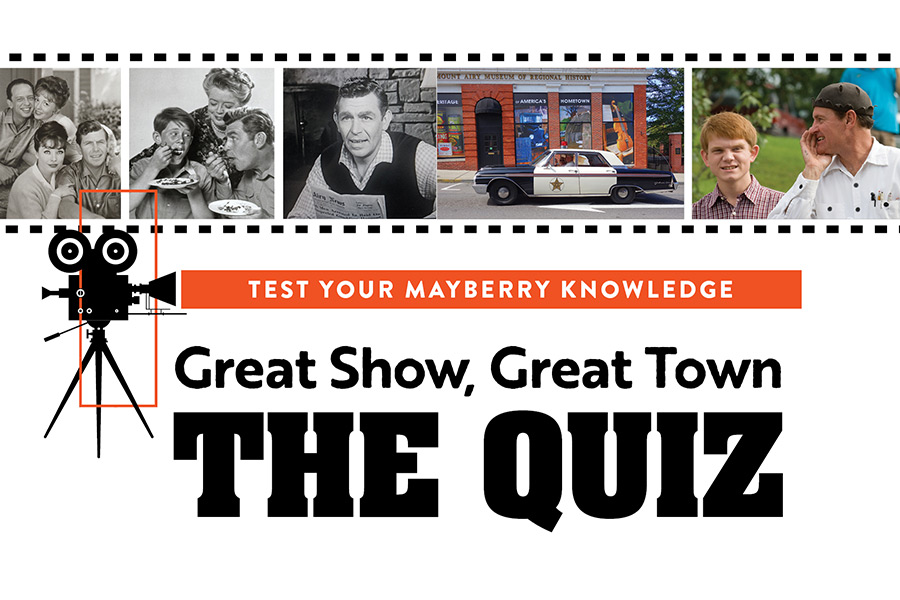 A7. Mayberry Days is an annual festival in Mount Airy. Tanya Jones, executive director of the Surry County Arts Council, gives a nod to Jim Clark for sparking the idea for the annual Mayberry Days celebration. Clark co-founded The Andy Griffith Show Rerun Watchers Club (TAGSRWC) in the late 1970s. The first Mayberry Days festival took place in 1990 to celebrate the 30th anniversary of the show. This year, Mayberry Days runs September 21-26 with a line-up of family-friendly activities. While in town, make sure to check out the replica Mayberry Courthouse and Jail located adjacent to Wally’s Service Station. A replica of the Darlings’ cabin sits out back. surryarts.org/mayberrydays