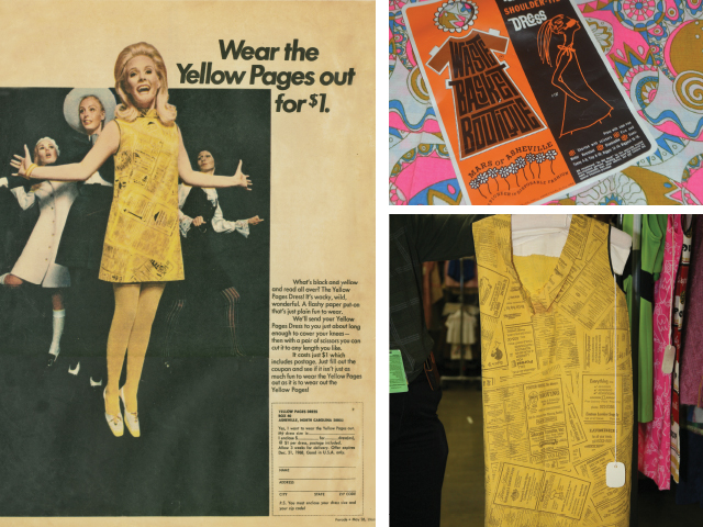 The headline read, “Wear the Yellow Pages Out for $1.” The ad copy carried out the tease: What’s black and yellow and read all over? The Yellow Pages Dress! It’s wacky, wild, wonderful. A flashy paper put-on that’s just plain fun to wear. We’ll send your Yellow Pages Dress to you just about long enough to cover your knees—then with a pair of scissors you can cut it to any length you like.